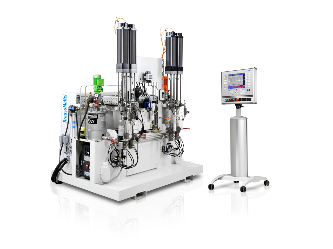 Die Tandem-Dosiermaschine von uns kombiniert die Vorteile von Pumpen- und Kolbendosierung und ist speziell für die Verarbeitung von gefüllten PUR-Komponenten konzipiert. Sie eignet sich ideal für Anwendungen mit hohen Schussgewichten bei gleichzeitig kleinen Zylindergrößen. Durch die Tandem Methode wird keinerlei Leerlaufzeit in dem Kolbendosiervorgang entstehen.