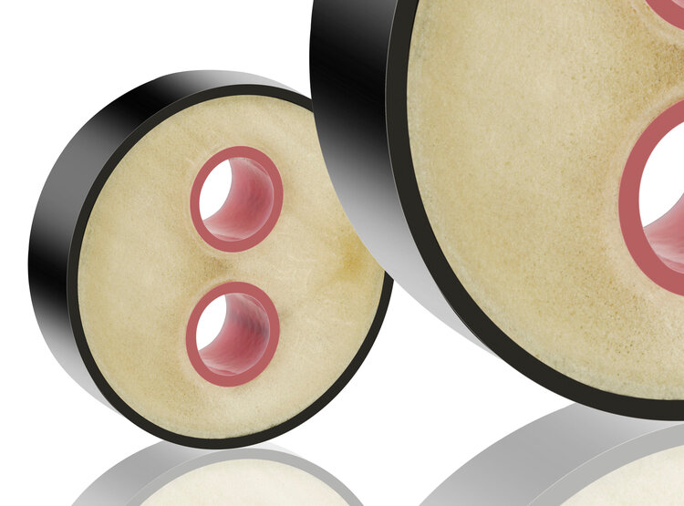Material: Innenrohr aus Stahl oder PE-X; PUR-Mittelschicht; Außenschicht aus PE