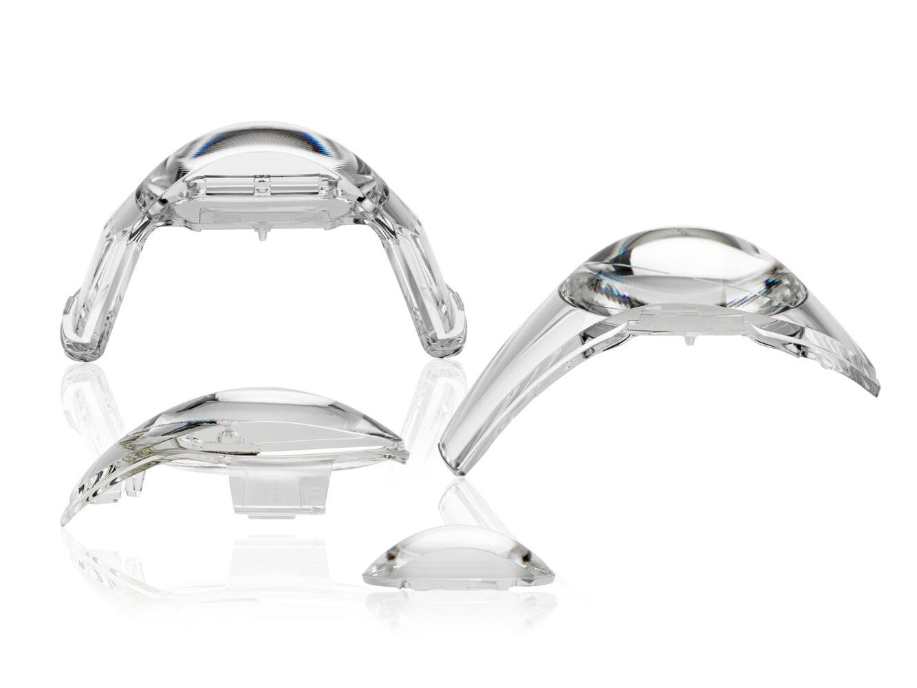 Bei der Multilayer-Technologie wird zunächst ein Kern gespritzt, der anschließend in mehreren Takten – ein- oder beidseitig – mit dem gleichen Material überspritzt wird. Die Herstellung erfolgt auf einer Mehrkomponentenmaschine und eignet sich besonders für dickwandige, meist optische 1K-Bauteile.