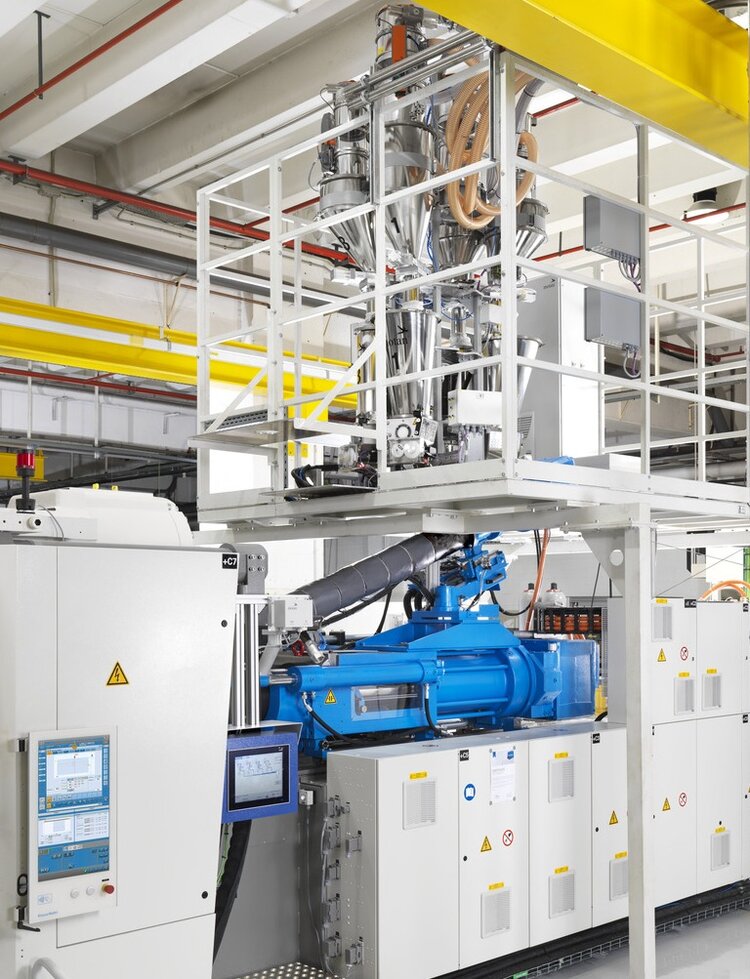 With Direct Compounding Injection Molding (DCIM), an additional extruder with a single screw is adapted to a standard injection molding machine and enables the direct compounding of thermoplastics in an inline process. This allows material costs to be significantly reduced, in-house formulation expertise to be built up and a significantly reduced CO2 footprint to be achieved.