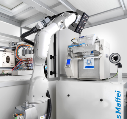 Complete production cells consisting of injection molding machine and automation for the most demanding requirements of the medical and pharmaceutical industries.