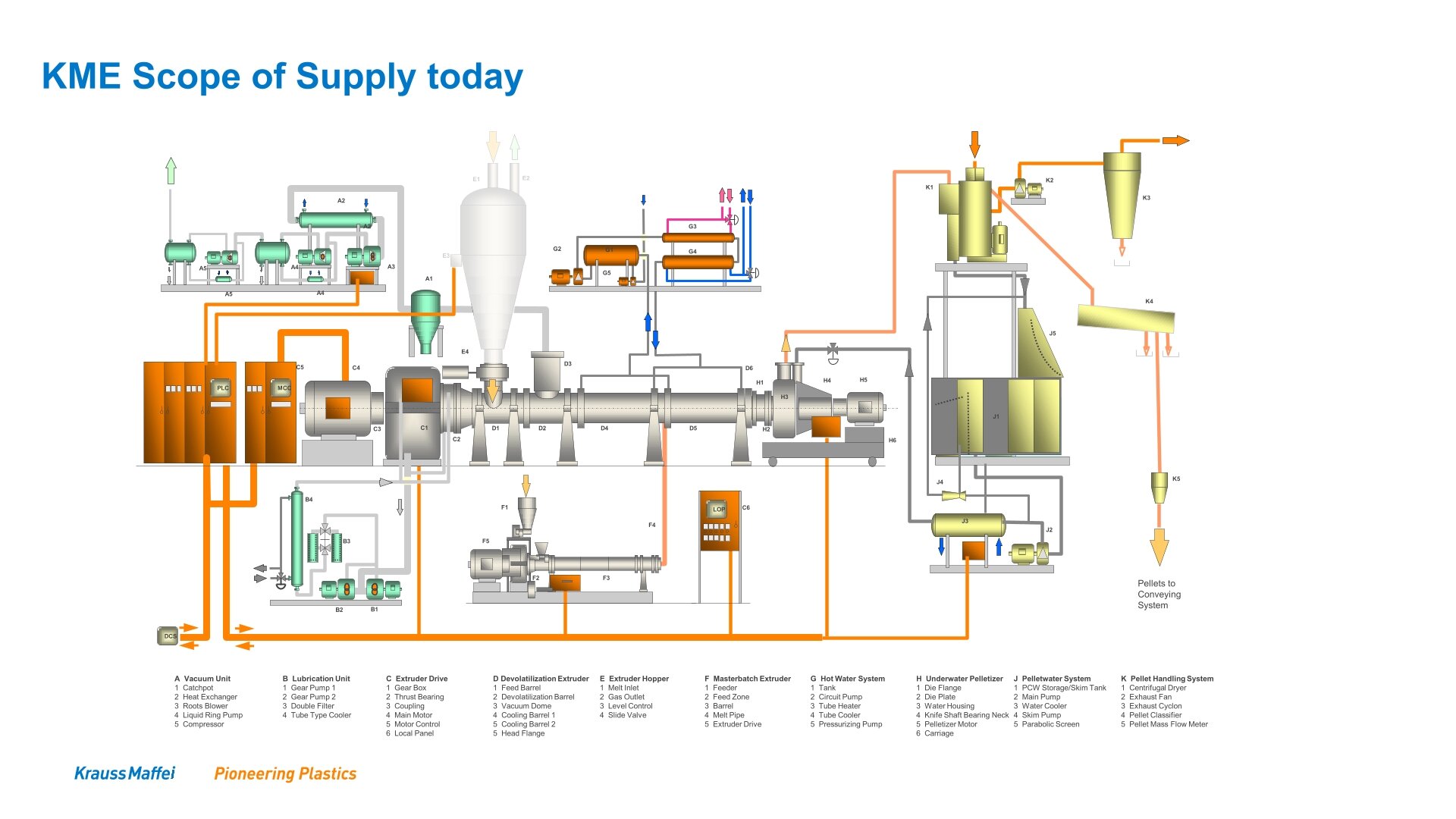 KraussMaffei Extrusion offers time-tested & state-of-the-art machinery for virgin polymer producers worldwide. With extensive know-how in engineering, manufacturing and safe commissioning of extrusion lines for the petrochemical industry, we are a proven and strong partner to our customers. Especially in this field, reliability, uptime and competent support are obligations for the profitability of your enterprise. With our large-scale single (KE series) and twin-screw extrusion lineup (BP and PC series) we can offer efficient tailored solutions for any process demand: novel or established, through licensors, EPC contractors or directly.