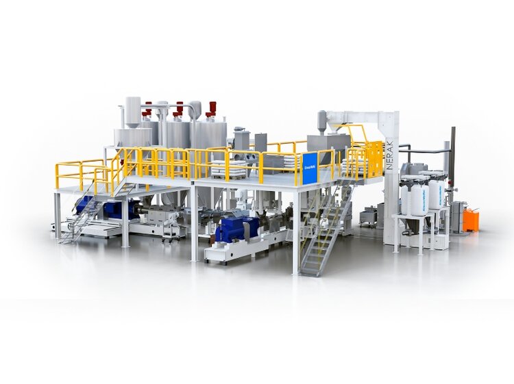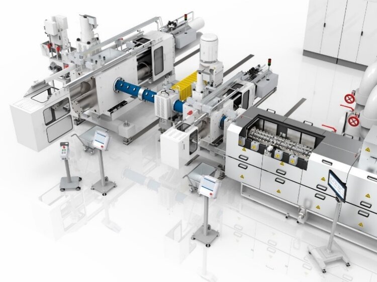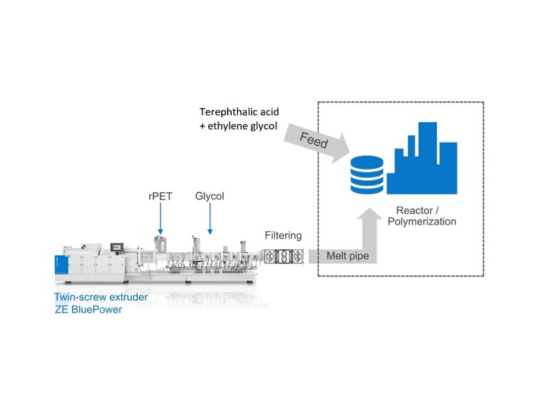 PET is the flagship material of the circular plastics economy: consistently available, low in variability, and reactive for re-condensation. Our ZE BluePower twin-screw extruder offers a fully scalable system (20–12,000 kg/h) for gentle melting, effective moisture removal, and short residence times, preserving intrinsic viscosity and making the material fully reusable for preform production.