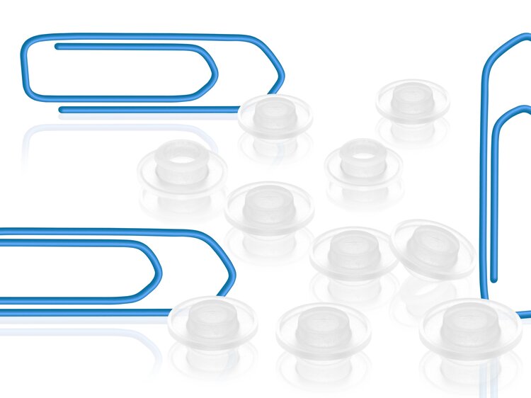filigree miniature parts for medical technology: micro membranes made of LSR weighing only 0.0375 g |